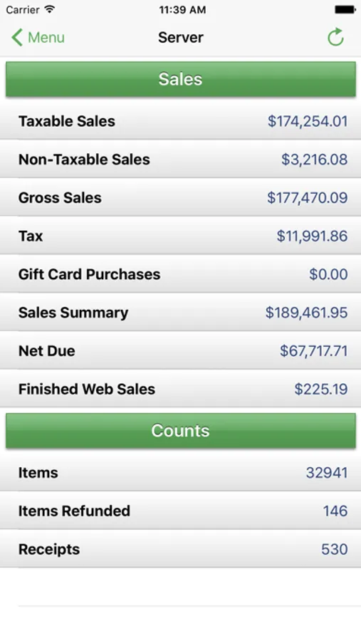 The Liberty Mobile Sales Summary App gives store Owners and Managers the ability to keep track of their store's sales data while on the go. If you have multiple stores, this App is even better as it can aggregate all the data into a single list. The data that appears is similar to the totals on the End Of Day Sales Summary report. You can choose from a few preset ranges like Today, Year-To-Date, and Last Year for quick access, or choose your own starting and end dates.