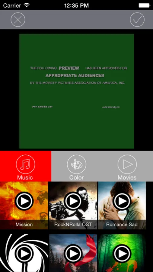 Record with Camera and edit using Editor, videos with duration of up to 30 min on a fly with a single tap. Click Moviefy and pick Genre - Comedy, Horror and Romance, Vampire Love, Romance, Crime, Circus etc. (stay tuned for more) and app will do the rest. Or if you want your own version - add music to your video and save to camera roll. Don't forget to share on Tumblr, Facebook or YouTube!