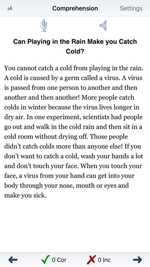 This app is aimed at helping individuals who need extra practice with reading comprehension and learning how to recall specific details of stories. It is also appropriate for children and adults with traumatic brain injuries or stroke. Ideally, the student will work with a parent, teacher, or therapist while using the app. The mentor can guide the student’s reading strategies while using the app as a source of stories and questions.