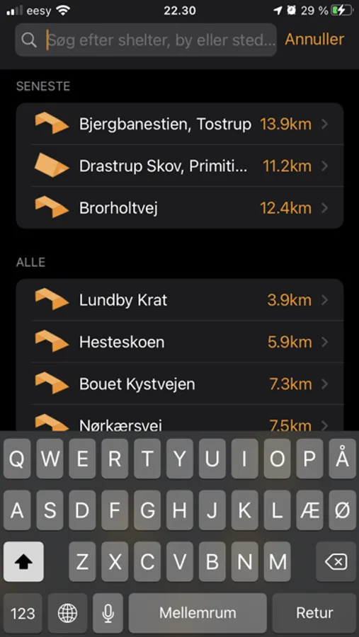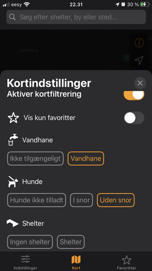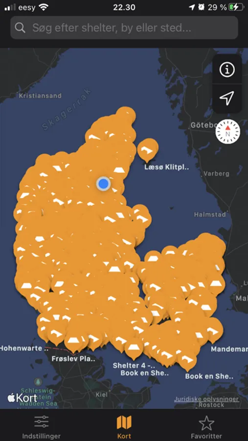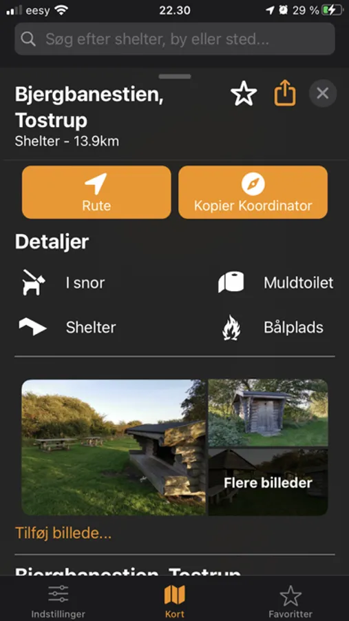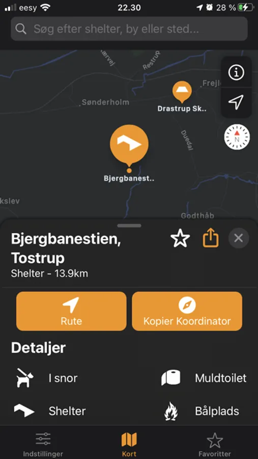 Nogle sheltere er helt nye, nogle er ti år gamle, nogle findes med rindende vand og toilet. Fælles for dem er, at størstedelen er gratis at benytte. Langs og omkring mange af disse, findes også primitive teltområder, der giver mulighed for at møde gæstfrie danskere for en skilling, svarende til en pose chips.