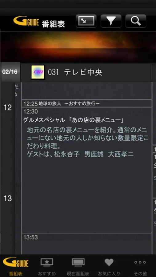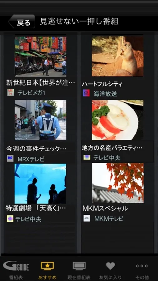 ジャンル毎に分けて、放送局からの公式「おすすめ番組」が表示されます。