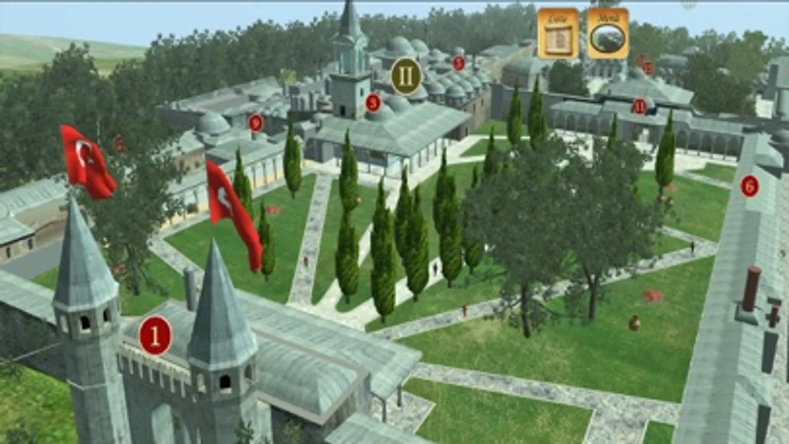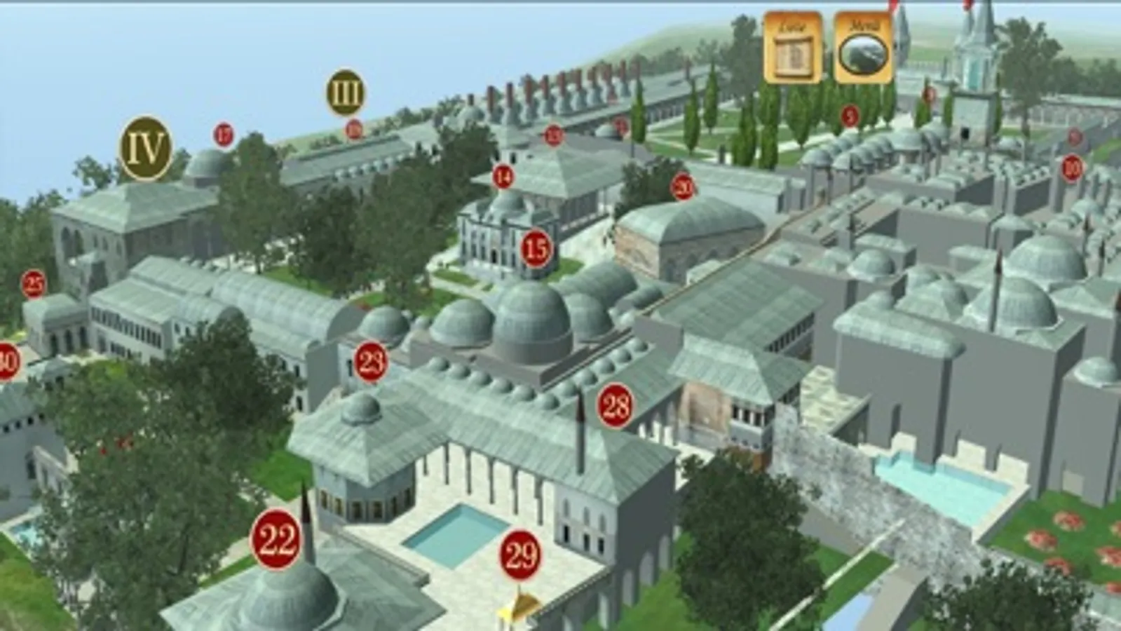 Topkapı Sarayı 3D uygulaması ile Topkapı Sarayı'nı üç boyutlu modeli üzerinden interaktif olarak kontrol edebilecek, önceden görmediğiniz açılardan inceleyebilecek, Divan Meydanı, Enderun Avlusu ve Sofa-i Humayun avluları ve bu avlulardan erişilen mekanlar hakkında interaktif olarak bilgi alabileceksiniz.