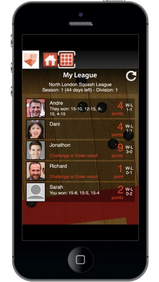 If you’re travelling and fancy a game of squash whilst away from home, simply use your phone's GPS to update your position and search for players to have a hit!