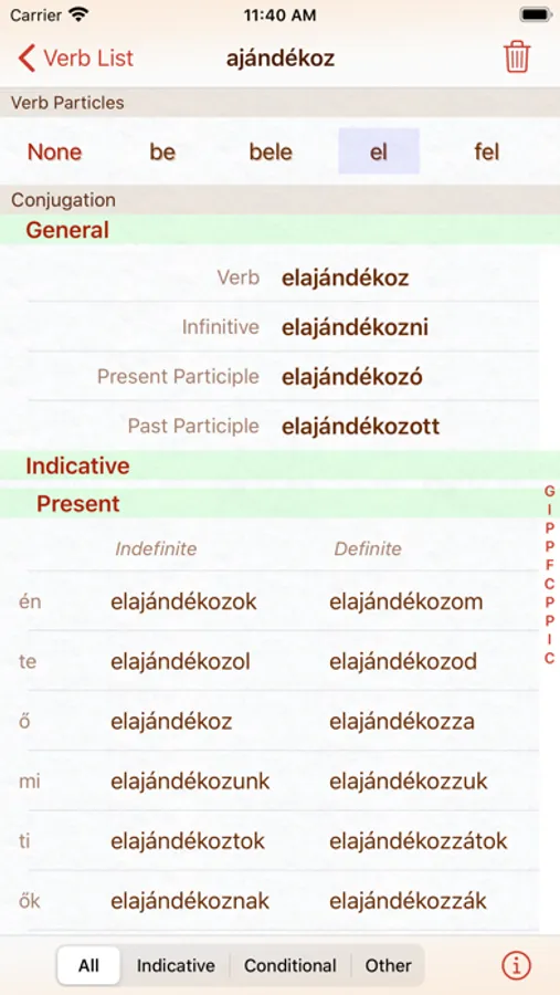 Hungarian verb conjugation can be challenging. The goal of this app is to ease the Hungarian language learning process by providing a beautifully designed and easy to use interface, where you can quickly find the most important verbs and their conjugated forms.