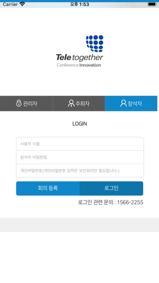 중요 : Smartmanager는 텔레투게더 다자간 전화회의 서비스와 연동되어 활용할 수 있는 서비스로 계정이 필요합니다. 계정이 없으면 이 Smartmanager는 작동하지 않습니다. 계정 문의는 텔레투게더 고객지원센터에서 도와드립니다.