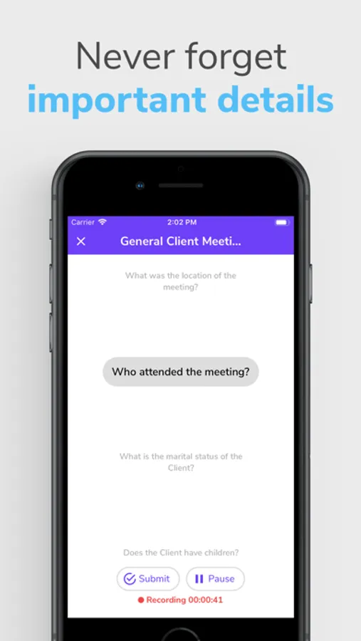 Use Mobile Assistant to efficiently capture meeting notes that will increase the amount of detail documented, thus revealing more opportunities, and will ensure an accurate meeting memorandum.
