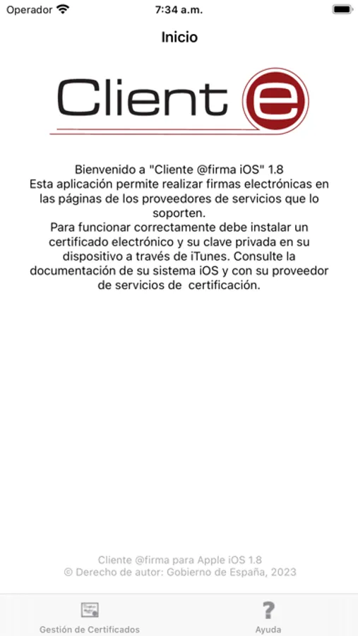 La aplicación debe ser invocada desde una página Web compatible para la realización de las firmas digitales, si se invoca directamente desde el icono en su sistema iOS únicamente se mostrará contenido informativo. Puede comprobar el adecuado funcionamiento desde la siguiente página Web de prueba: https://valide.redsara.es/firmaMovil/demo.html