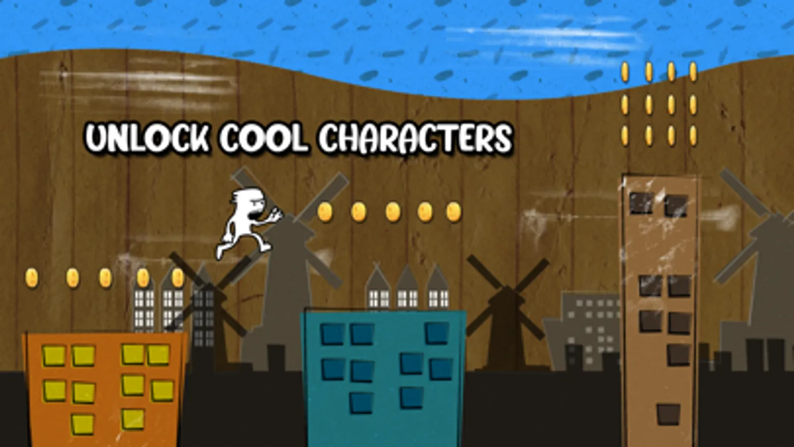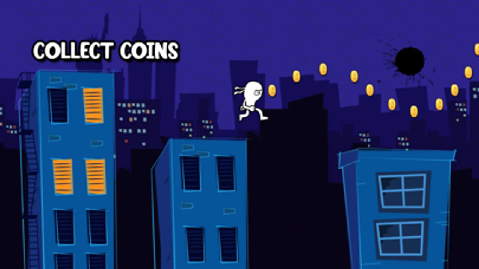 Jump from building to building, leaping over obstacles and enemies as you collect coins and gems.