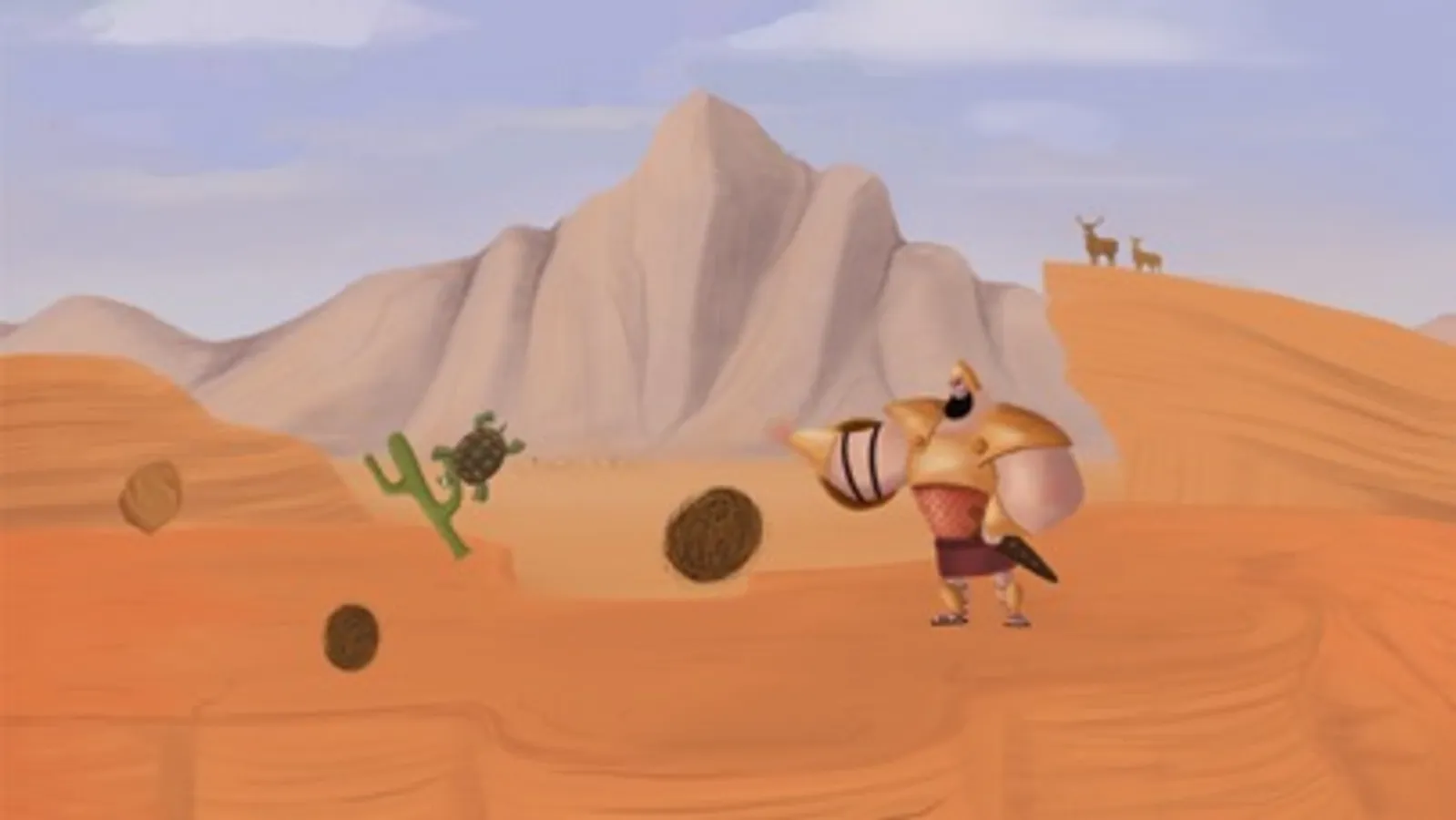 Meet young David son of Jesse, the future king of Israel, as he faces Goliath the giant Philistine warrior, using only his slingshot. After refusing to take King Saul’s armor and sword, David fights Goliath with no fear, hits him in the center of the forehead and watches the mighty giant fall down to the ground.