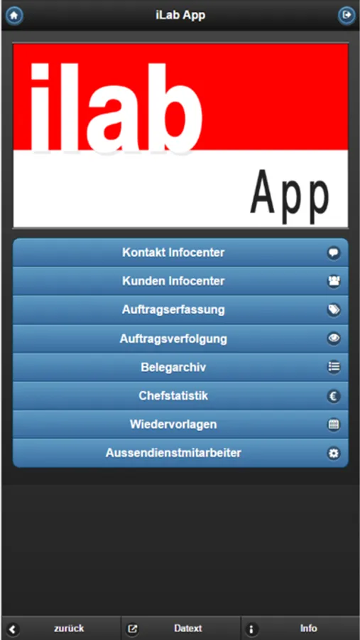 Ein besonderes Highlight der DATEXT Software ist die zum Ilab office Infocenter verfügbare ilab APP für iPhone und iPad. Alle Infocenter Informationen plus Auftragsverfolgung können mobil abgerufen werden. Für den Zahntechniker im Außendienst eine wichtige Informationsquelle. Für Anwender von ilab office SQL und dem ilab webservice steht sie kostenfrei zur Verfügung.