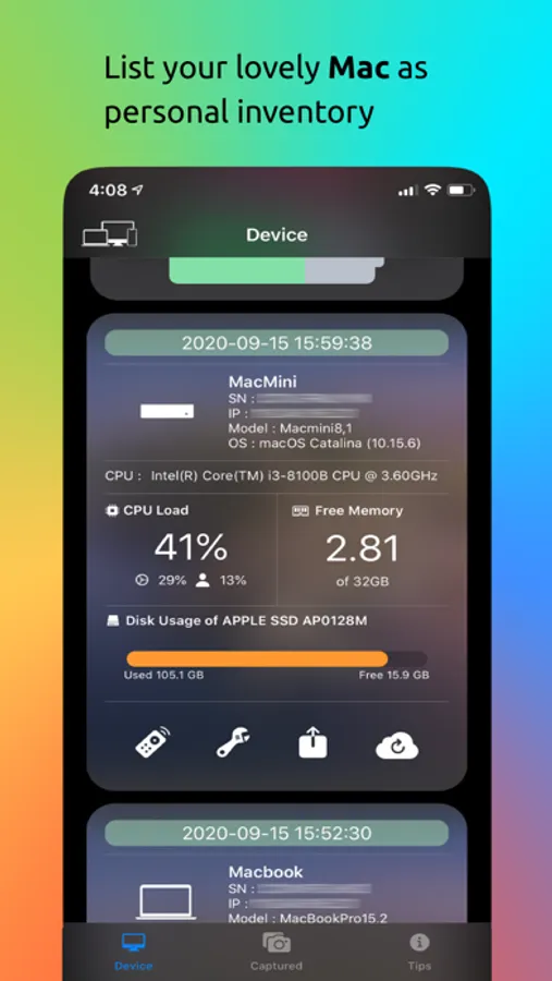 'myAddress' has iOS version now! It displays overview of all your Mac(s) system informations on a single scroll view such as a personal inventory, Plus some remote features called "Action Request".