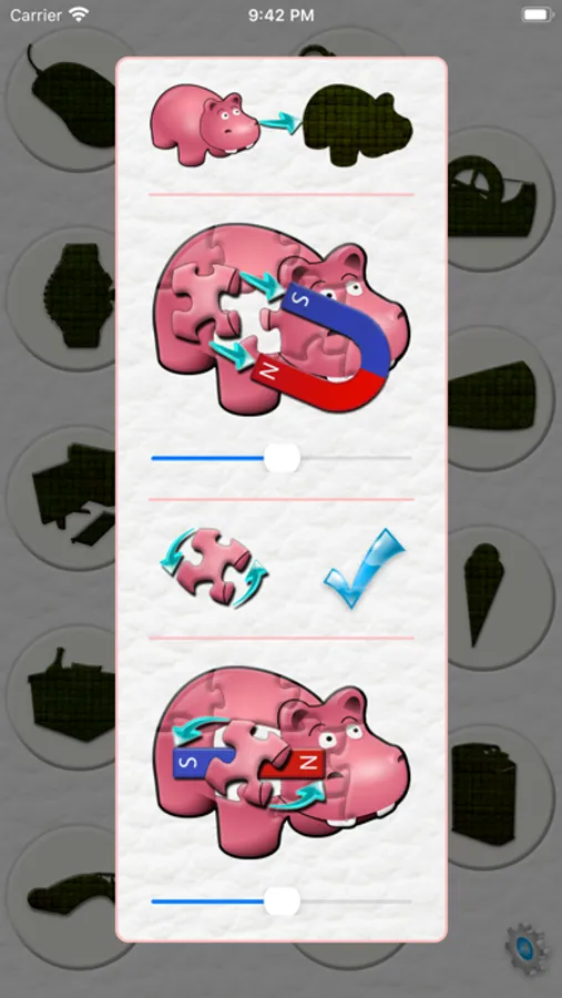 This app contains 18 hand-picked and individually prepared jigsaw puzzles, featuring a rather unique support for rotating puzzle pieces, just as you would, when doing a real puzzle.