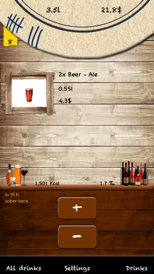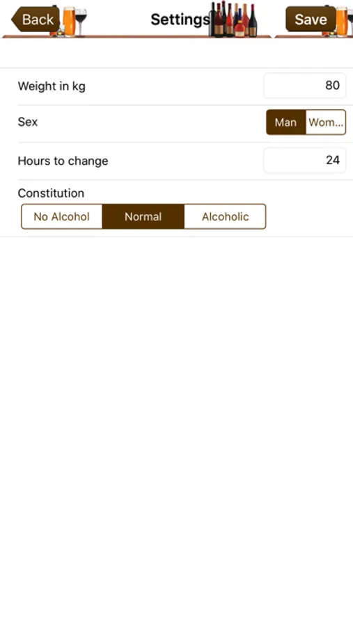 By entering weight, sex and drinking behavior, an approximate blood alcohol level is calculated in this App. This value is used for entertainment only and does not indicate whether one is able to control a vehicle. Don't drink and drive!