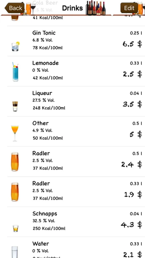 Pick a drink and save the quantity and price. There are predefined, some drinks, they can be changed at any time.