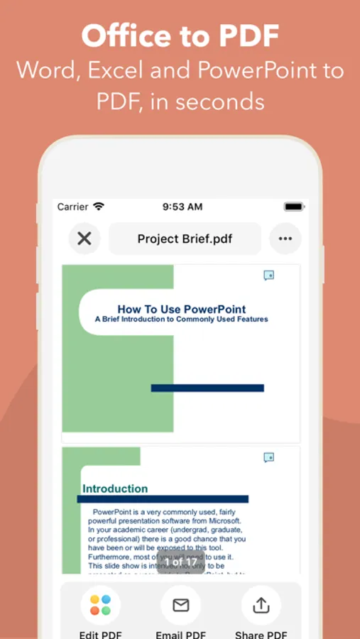 Convert Word, Excel or Power Point documents into PDF in a matter of seconds. Just select the office file, and we take care of the rest.
