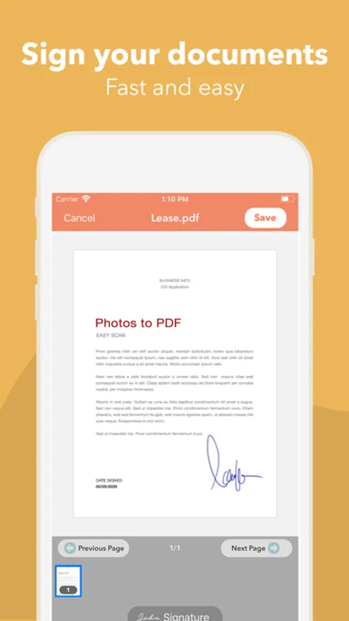 Just open your PDF, select "Sign", add you signature and done! Sign your documents fast and easy.