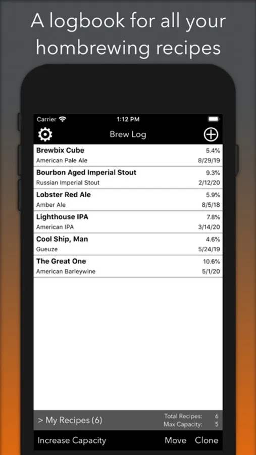 • Built in calculators to determine original and final gravity, alcohol (ABV), bitterness (IBU), color (SRM), efficiency, attenuation, and more.