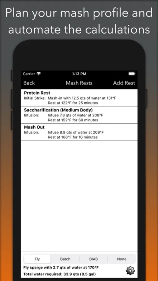 • Mash Rest & Sparge calculations for simple to complex mashes. Calculates volumes and temperatures for your strike water, infusions, and decoctions.