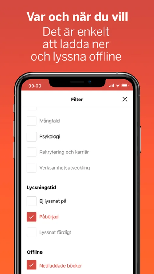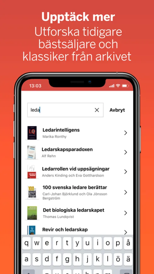* Över 140 titlar uppdelade i kategorier som Psykologi och forskning, Mångfald, Beslutsfattande, Inspiration och Ny som chef.