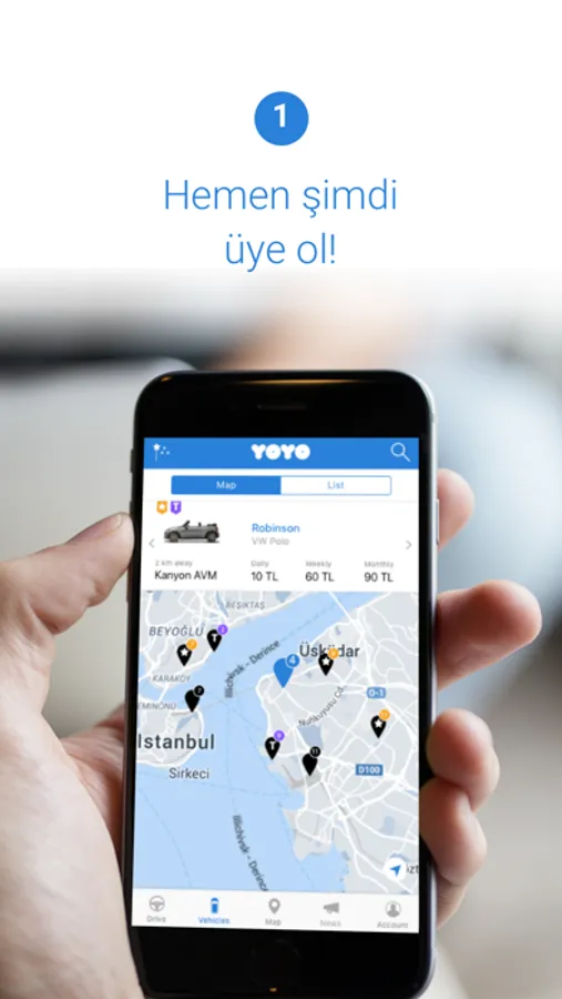 YOYO bir kullan-bırak araç paylaşım kulübüdür. Üye ol, istediğin aracı seç, dilediğin süreyle kirala! Kullan ve bırak.