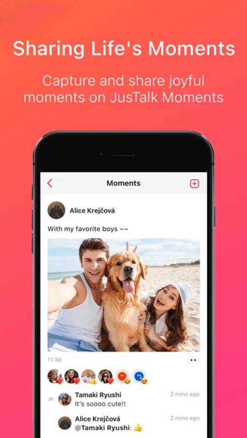 Share daily moments or the best moments from your calls/chats with your family and friends on your JusTalk Moments.