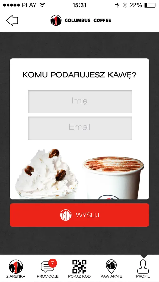 Columbus Coffee – kawa za kawę. Zbieraj ziarenka i wymieniaj je na kubki pełne aromatycznej kawy. Aplikacja Columbus Coffee to karta lojalnościowa, którą masz w swoim telefonie. 6 wypitych kaw wymieniasz na dowolny napój! Proste? A to przecież nie wszystko! Zaloguj się facebookiem i korzystaj z dodatkowych ofert, jakie Columbus Coffee przygotuje specjalnie dla Ciebie! Zniżki na kawę, promocyjne kody, mapa z lokalizacją i godzinami otwarcia wszystkich lokali – wszystko w Twojej kieszeni!
