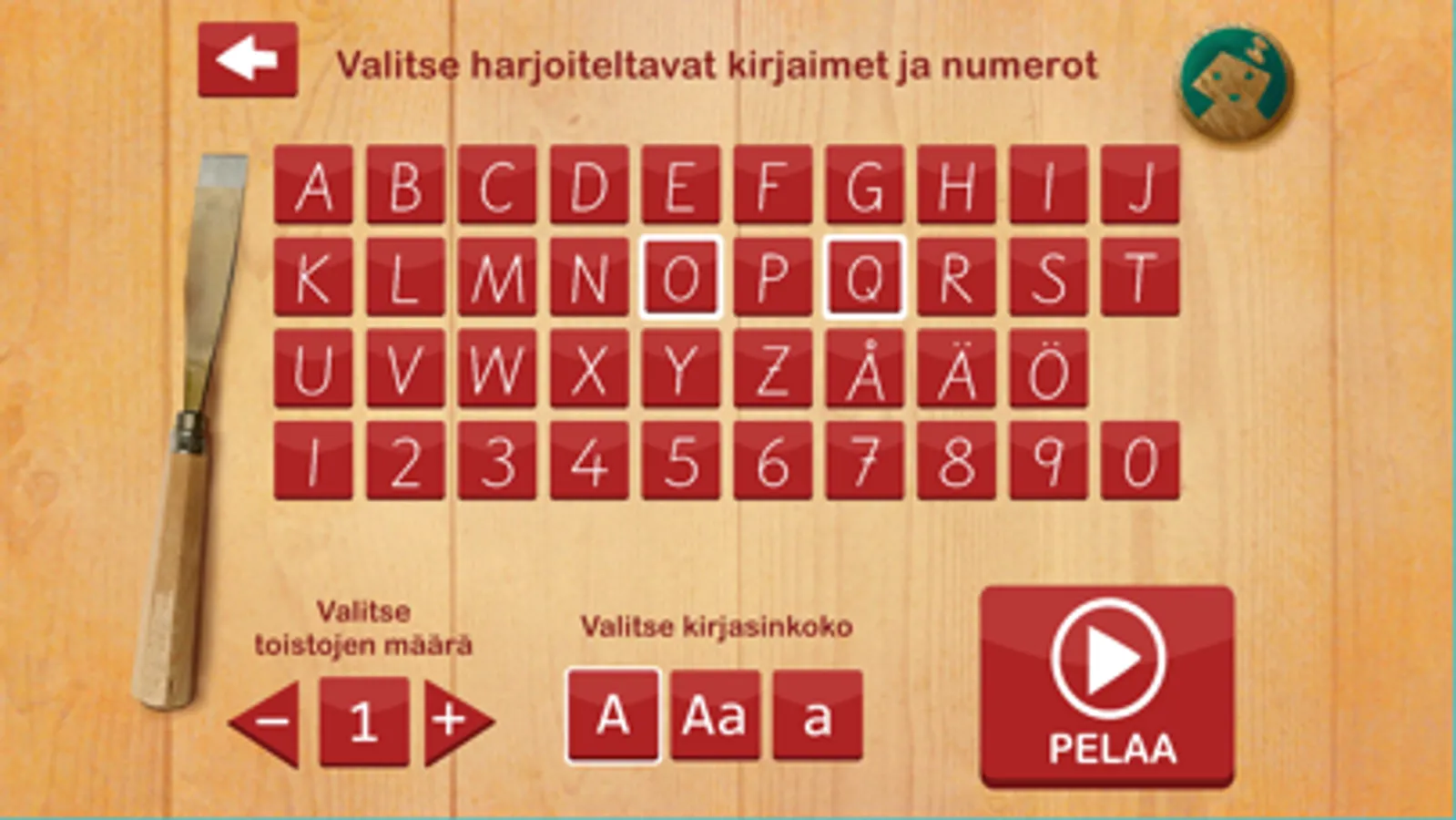 - peli tukee oppijan käsialan kehittymistä