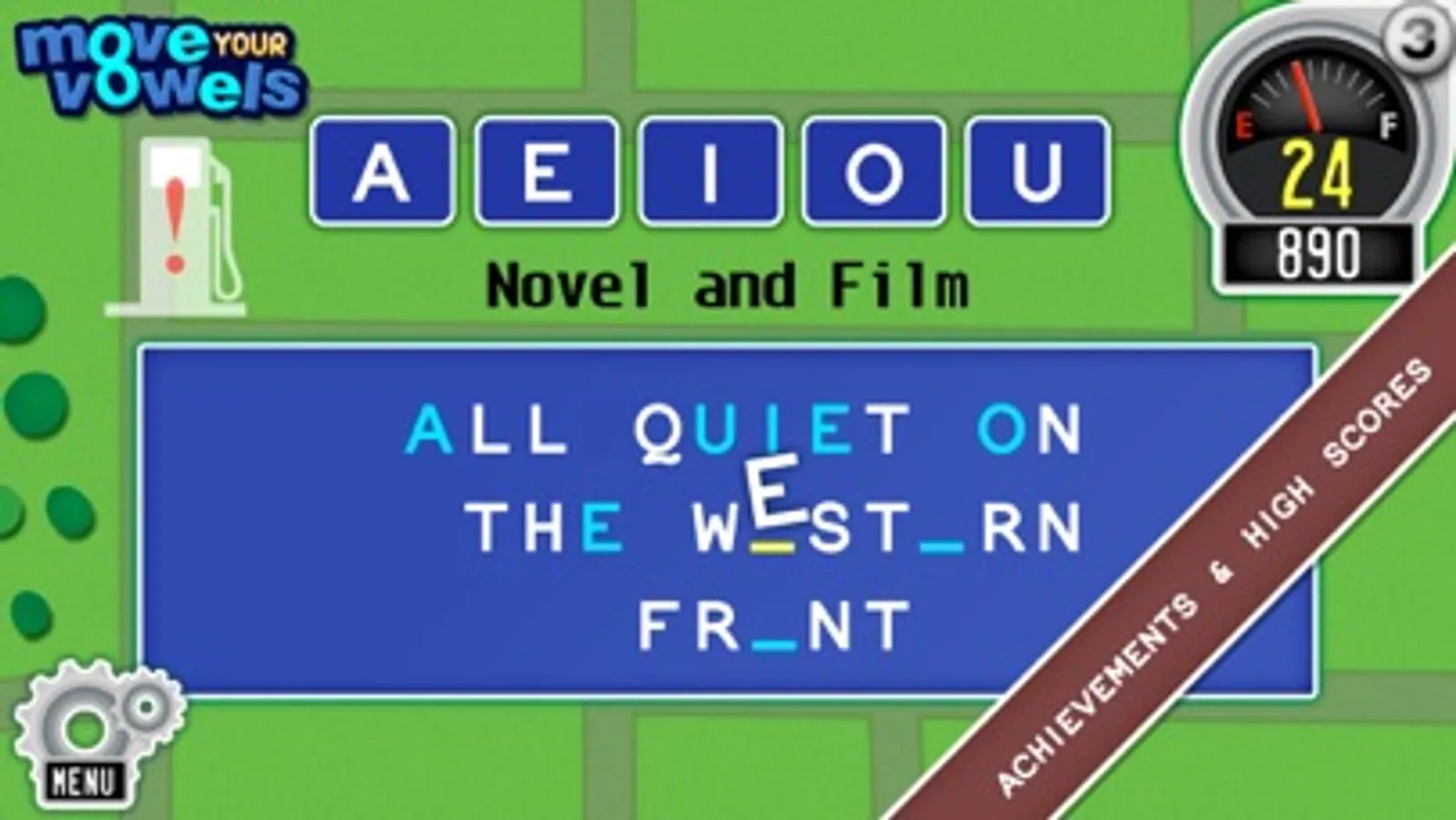 Move Your Vowels will get your wheels turning as you take a spin through three rounds of words and phrases. Each round brings words that are a little more challenging, so step on it!