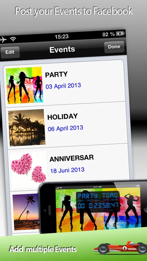 - Tell your friends on Facebook about an important event that’s coming up and post it directly from this app