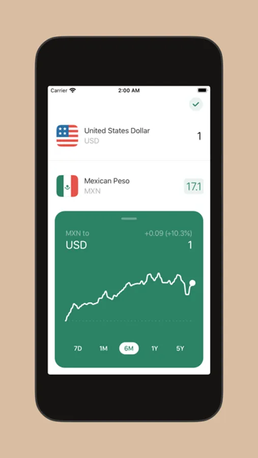 Money conversion is made simple with our gesture based interface. Swipe the keyboard down to access the list of five free favorites, swipe left for quick access to historical charts. Tap on your favorites to set the base currency. Delete the base currency amount by swiping right or restore it by dragging it back.