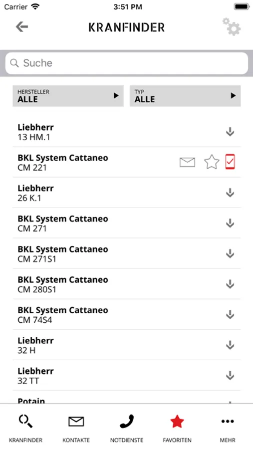 Ob Ansprechpartner, Krane oder Standorte: In unserer App können Sie Ihre jeweiligen Favoriten markieren – und bei Bedarf auch wieder löschen. So haben Sie die Daten, die für Sie wichtig sind, auf einen Blick und immer aktuell zur Hand.