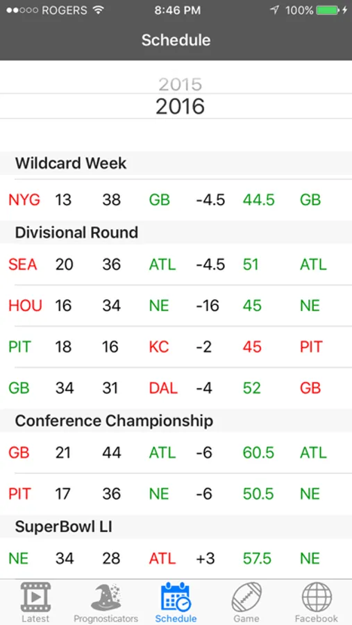 Also includes complete football schedule from 2000-2018 season with color coding for Straight UP (SU) winners, losers, and winners Against The Spread (ATS). Tap on a row to go the official game summary for any game.