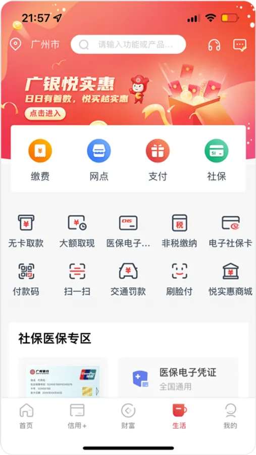 4.生活助手让您乐享生活。社保、医保、公积金等服务一站式办理;水、电、话费轻松智付。