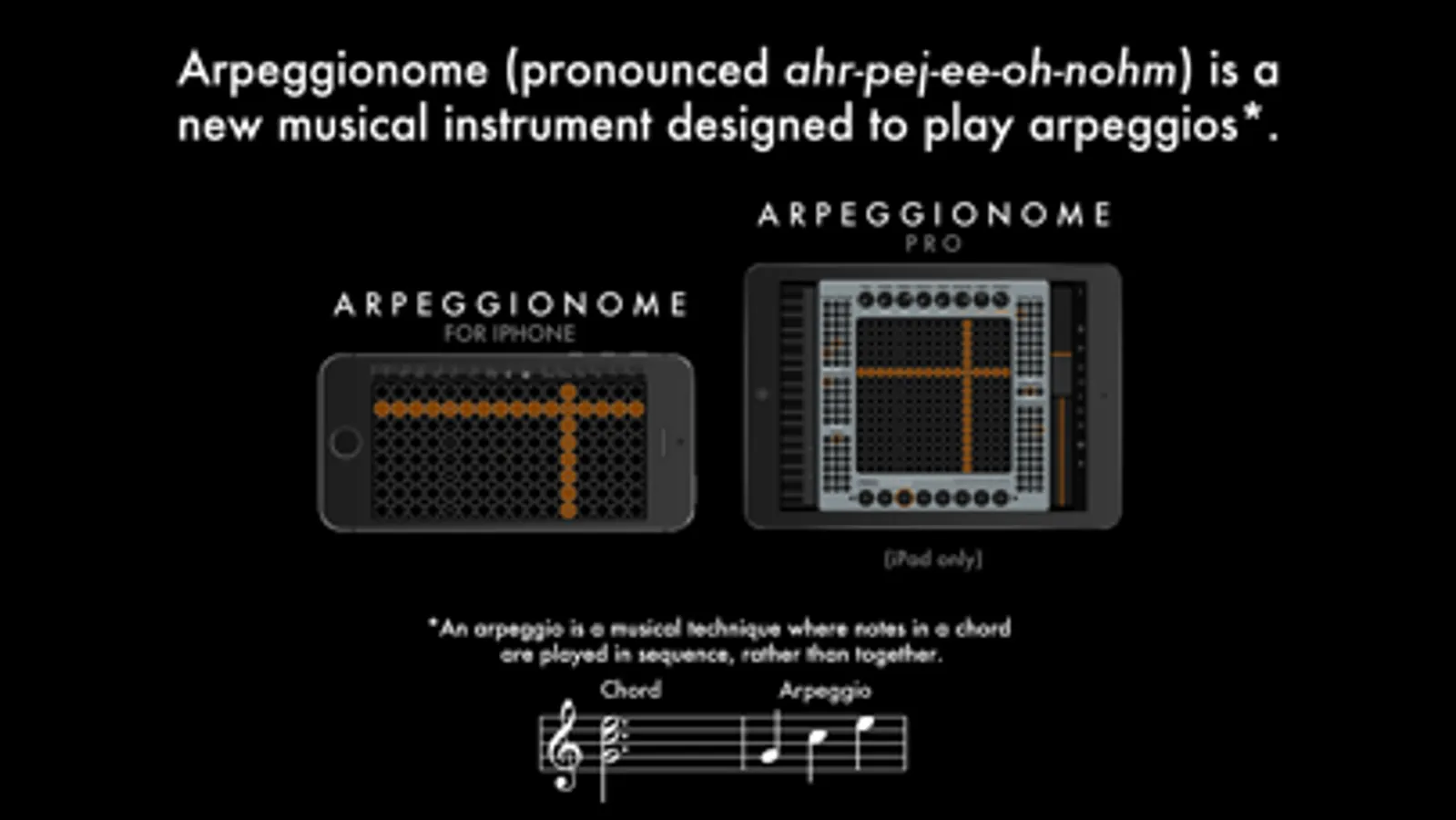 Arpeggionome (pronounced ahr-pej-ee-oh-nohm) is a new musical instrument designed to play arpeggios*.