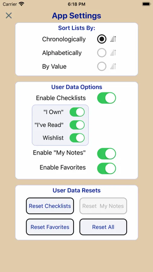 - User customization; including chronological or alphabetical ordering of lists, etc.