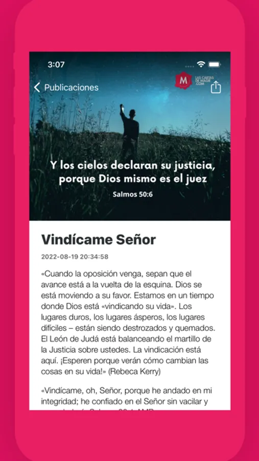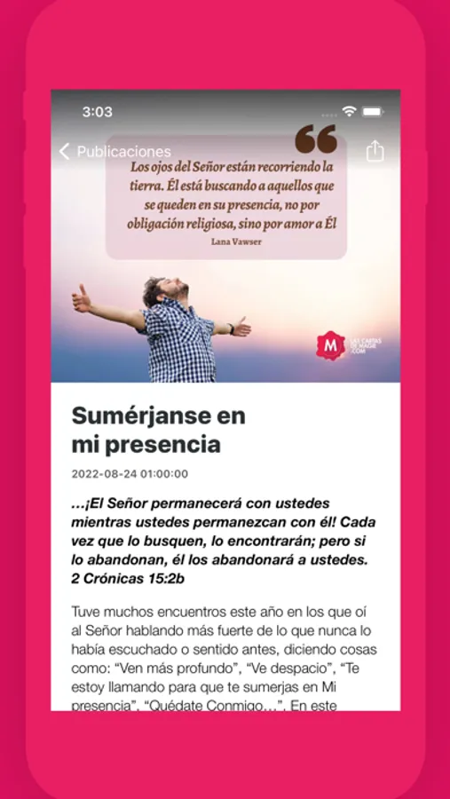 LAS CARTAS DE MAGIE lleva diariamente a sus lectores una carta de amor de nuestro Padre Celestial, un mensaje de ánimo, aliento y esperanza de un Dios que nos ama irrevocablemente.