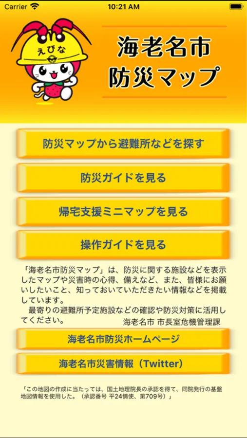 海老名市市長室危機管理課が作成した「海老名市防災マップ」アプリケーションです。