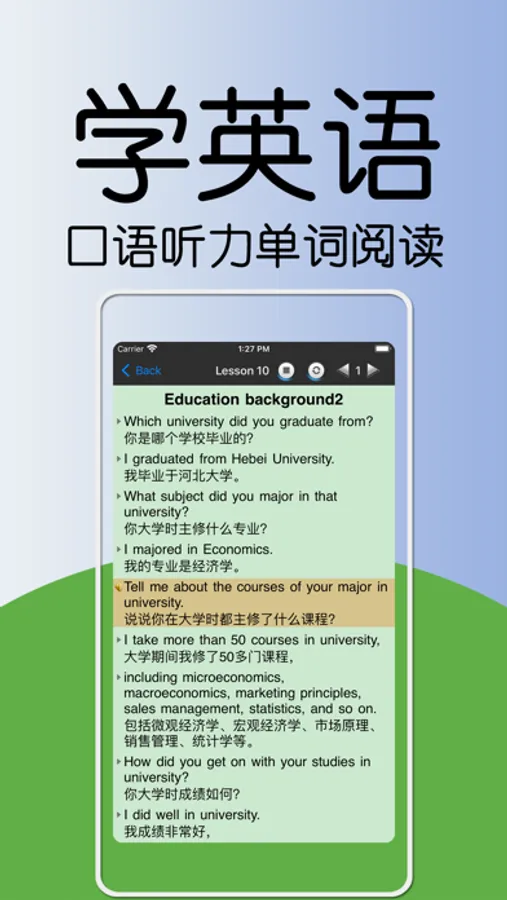 一站式解决练听力,说口语,背单词,高效阅读的英语学习app。