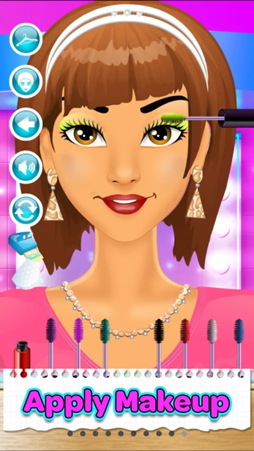 Makeup Salon : Apply makeup by picking up items with your finger and applying them onto the face. Use lipstick, eye-shadow, mascara and more! Change hairstyles, add earrings, hairpieces and much more! Use the makeup remover to remove makeup from the face.