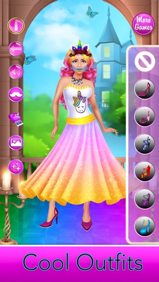 Go to the dressing room to complete your look! Choose your favorite styles with dresses, shoes, jewelry, accessories and much more! Add special effects, take a photo and change backgrounds! Sooo much endless makeover fun!
