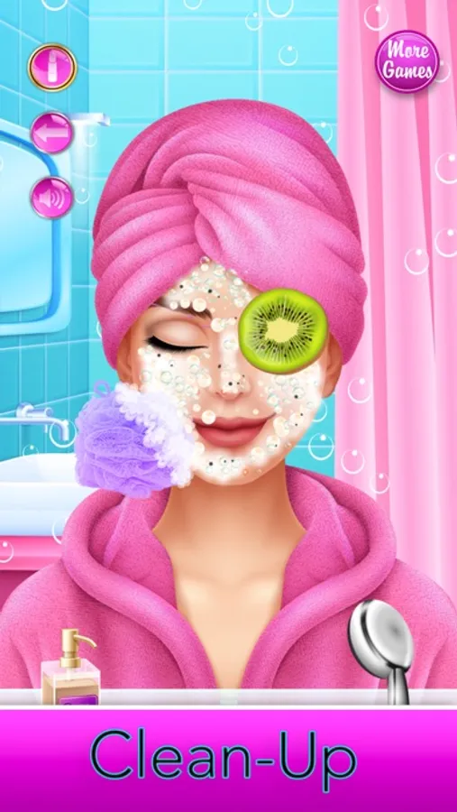 Start at the Spa! Help clean-up, wash the face and apply a face-mask! Then use the exfoliation tool and place fruits on the eyes to relax. Remove the old makeup, and wash up! Tweeze the long eyebrow hairs for a perfect loook! Let's go!