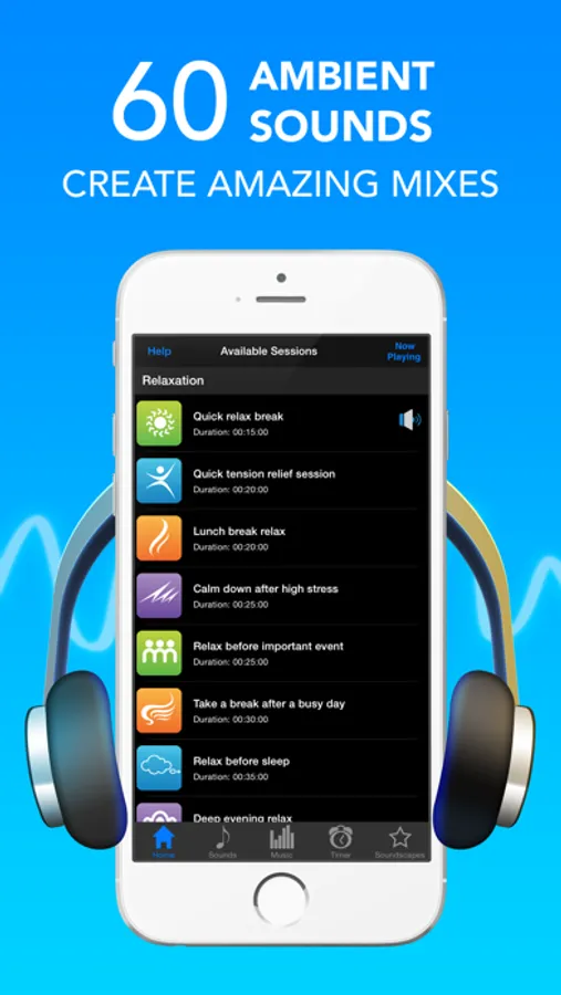 - Relaxation: Quick relax ∙ Tension relief ∙ Lunch break relax ∙ After a busy day ∙ Relax before important event ∙ After high stress ∙ Before going to bed ∙ Deep evening relax