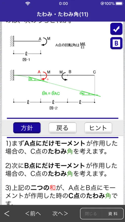 ・構造計算は、「方針」ボタンで解くための手順が表示されます。