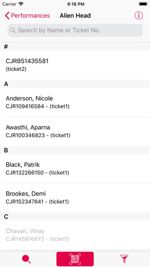 - Validate attendees by scanning e-ticket QR codes using your mobile device's camera, manually entering attendees' names, manually entering e-ticket numbers, or scrolling through the attendee list on your iPhone, iPad, or iPod Touch.