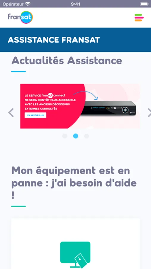 Trouvez sereinement les réponses à toutes les questions que vous vous posez où et quand vous le souhaitez. Disponible en ligne 24h/24 et 7j/7, l’Assistance FRANSAT vous accompagne pas à pas pour trouver la solution et vous dépanner rapidement.