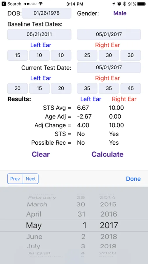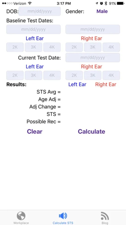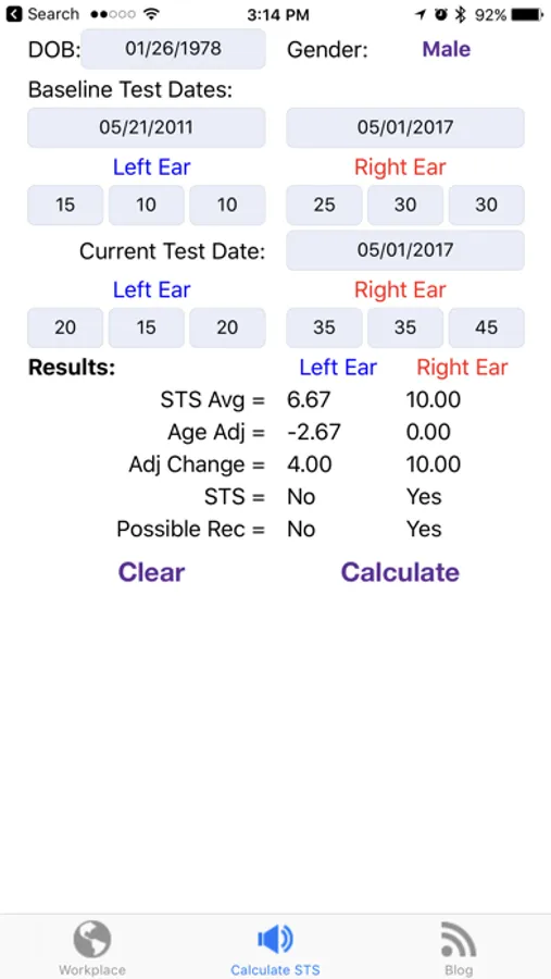 STS Calculator is used to enter in left and right ear decibel levels to determine if an OSHA audiometric test has a Standard Threshold Shift or Possible OSHA Recordable.