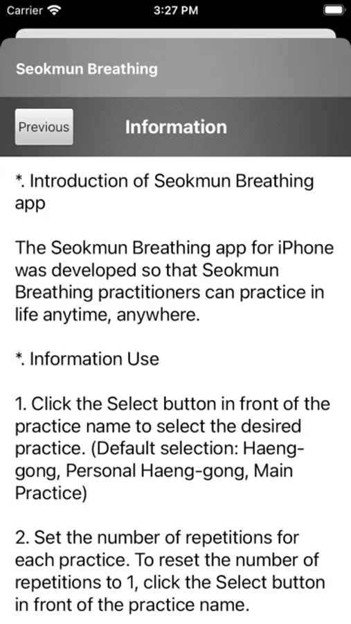 Seokmun Breathing app for iPhone was developed so that Seokmun Breathing practitioners can practice Seokmun breathing in their daily life, anytime, anywhere.