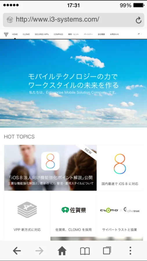管理者より案内される手順に従って、利用対象のiOSデバイスにCLOMO SecuredBrowserをインストールして、初期設定を行ってください。