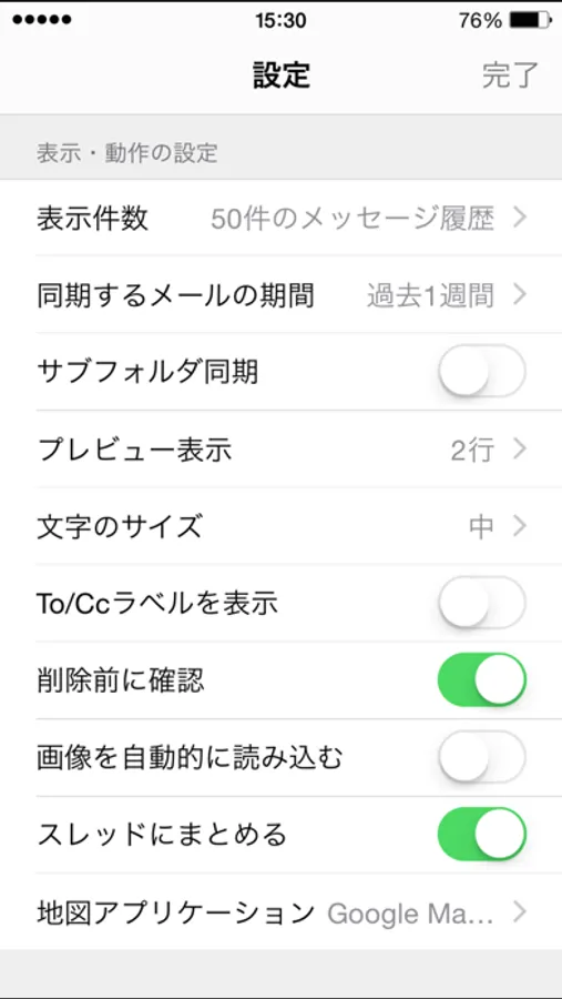 - 同期するメール期間設定(無制限/過去1日間/過去3日間/過去1週間/過去2週間/過去1ヶ月)