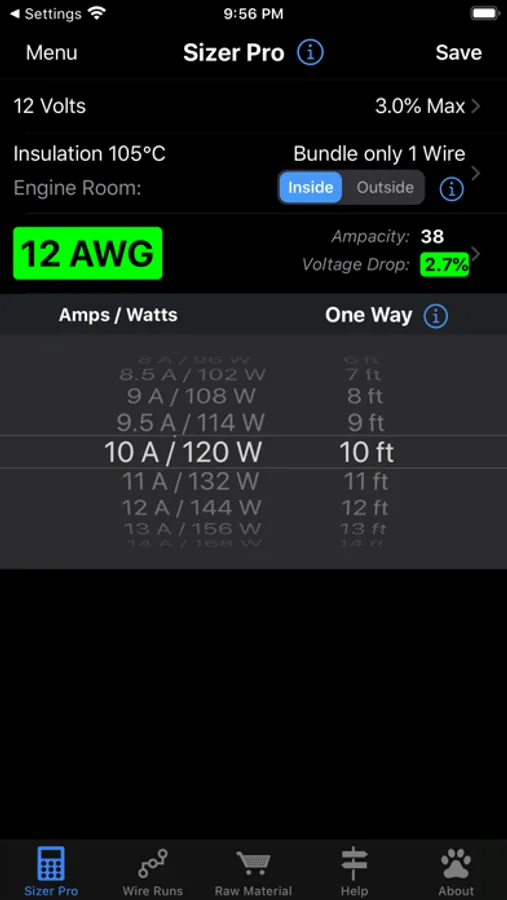 Adding accessories (bilge pumps, electronics, solar, etc.) or upgrading batteries (AGM, Li, etc.) this year? The #1 Cause of Boat and RV fires is DC wiring! Undersized wires can damage equipment or cause fires. The top-rated DC Wire Sizer calculates wire size for any DC voltage (ideal for solar in series). Plus lets you SAVE, EDIT, SUM, EMAIL and EXPORT the wire runs and material for your electrical plan, wire purchases, work orders, and records. And the Sizer Wizard option makes wire sizing easy for EVERYONE!